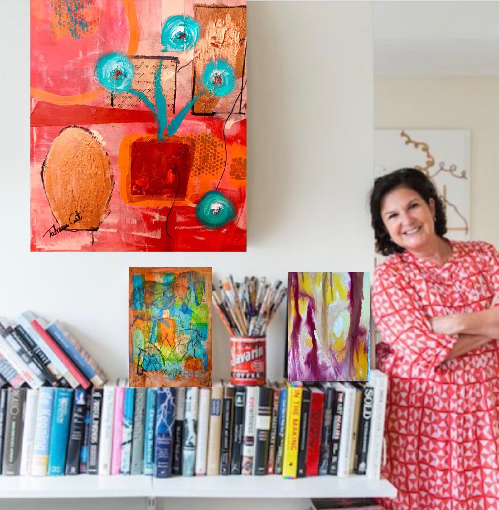 Soy artista plástica y profesora de arte. Mis pinturas reflejan los colores brillantes de la naturaleza y son creadas en técnica mixta y con la incorporación de papel o madera reciclados. Dar un nuevo propósito a estos elementos a través de mi arte es una manera de apreciar y respetar la naturaleza.